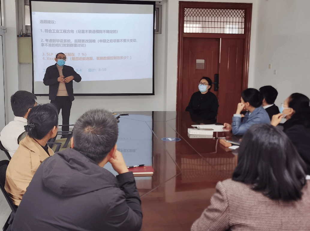 为从根本上解决往年存在的问题,会议组织全系教师围绕《工业工程手册》开展集中学习,进一步明确工业工程专业本科毕业论文的选题范围与方向。教师们结合自身教学与科研经验,就如何让选题更贴合行业需求、更凸显专业特色展开热烈讨论,并最终形成了一系列针对性的改进措施,包括:明确各阶段任务的截止时间,确保指导工作有序推进;制定详细的选题标准,引导学生选择具有实际意义与研究价值的课题;加强对学生选题意向的前期沟通与引导,避免选题偏离专业方向;建立“教师自查-系部讨论-老教师评审”的多级监管审核机制。