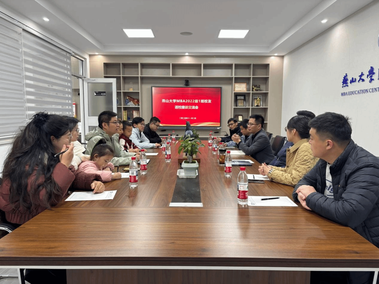 捐赠仪式结束后,MBA教育中心组织召开了校友返校座谈会。会议由中心主任刘海鸥老师主持,22级MBA1班部分校友代表参加了座谈。刘海鸥首先代表教育中心对22级MBA校友返校及慷慨捐赠表示热烈欢迎和衷心感谢。他指出,校友是学校最宝贵的资源,校友的成长与成就,是学校教育成果的最好体现。此次校友捐赠的不仅是一座雕塑,更是一份心意、一种精神的传承,它将激励在校学子不断进取,也将成为校园文化中一道亮丽的风景线。随后校友逐一发言,回忆起在校期间的学习生活点滴,分享毕业后的职业发展与成长经历,并就进一步加强校友与学院之间的联系、促进资源共享与经验交流等提出了积极建议。现场气氛温馨而热烈,充满了浓浓的校友情与燕大情。