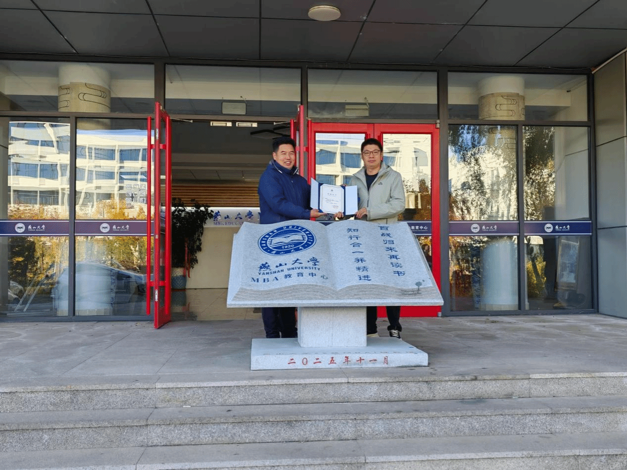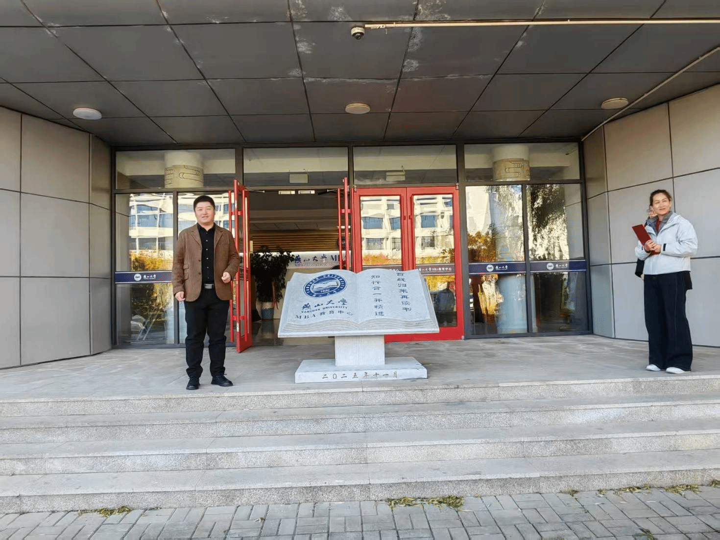 “厚德、博学、求是”的精神,22级MBA1班同学返校并向学院捐赠了一座寓意深刻的石雕书本雕塑。雕塑正面镌刻着“知行合一并精进 百战归来再读书”的字样,既体现了MBA学员在实践中不断学习、持续精进的精神追求,也表达了校友们不忘初心、重返校园再续同窗情谊的深厚情感。学院党委副书记王海涛,校友会副主席王玖河,MBA教育中心主任刘海鸥,中心教师及22级MBA 1班部分同学参加了本次活动。